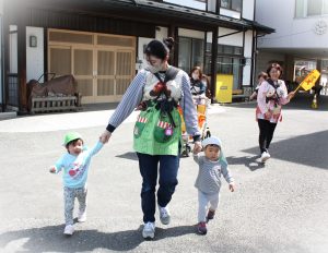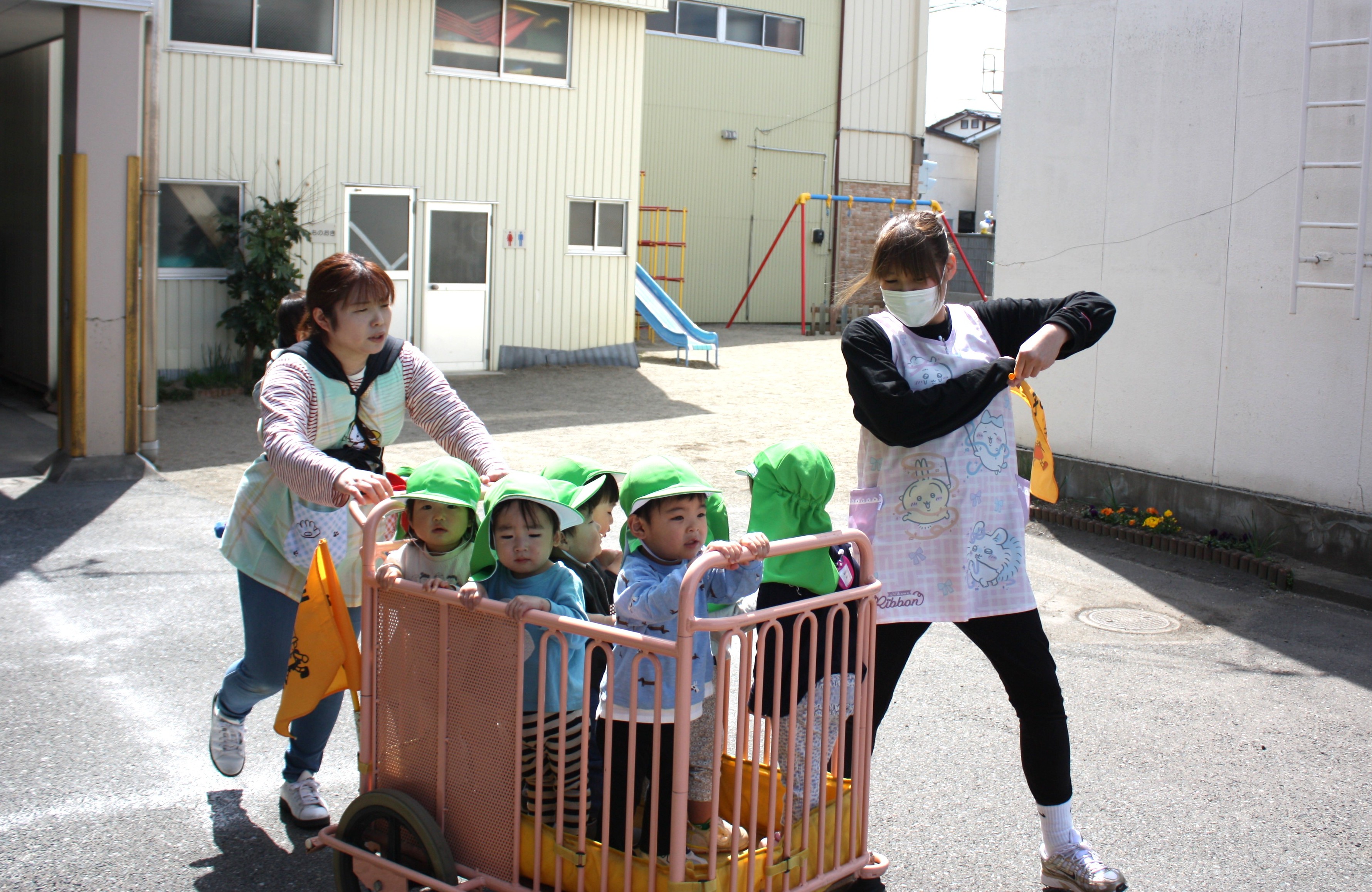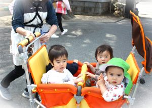 0・1歳児のうさぎ組さんお散歩バギーに乗って